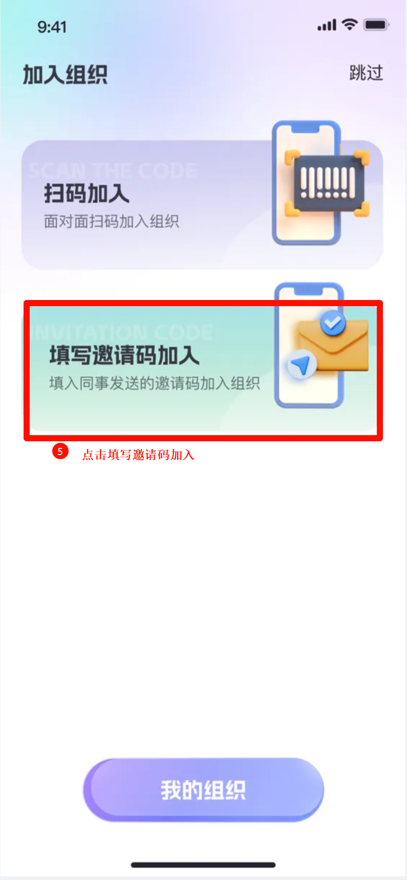 02/04:登录成功后,选择加入方式--【填写邀请码加入】