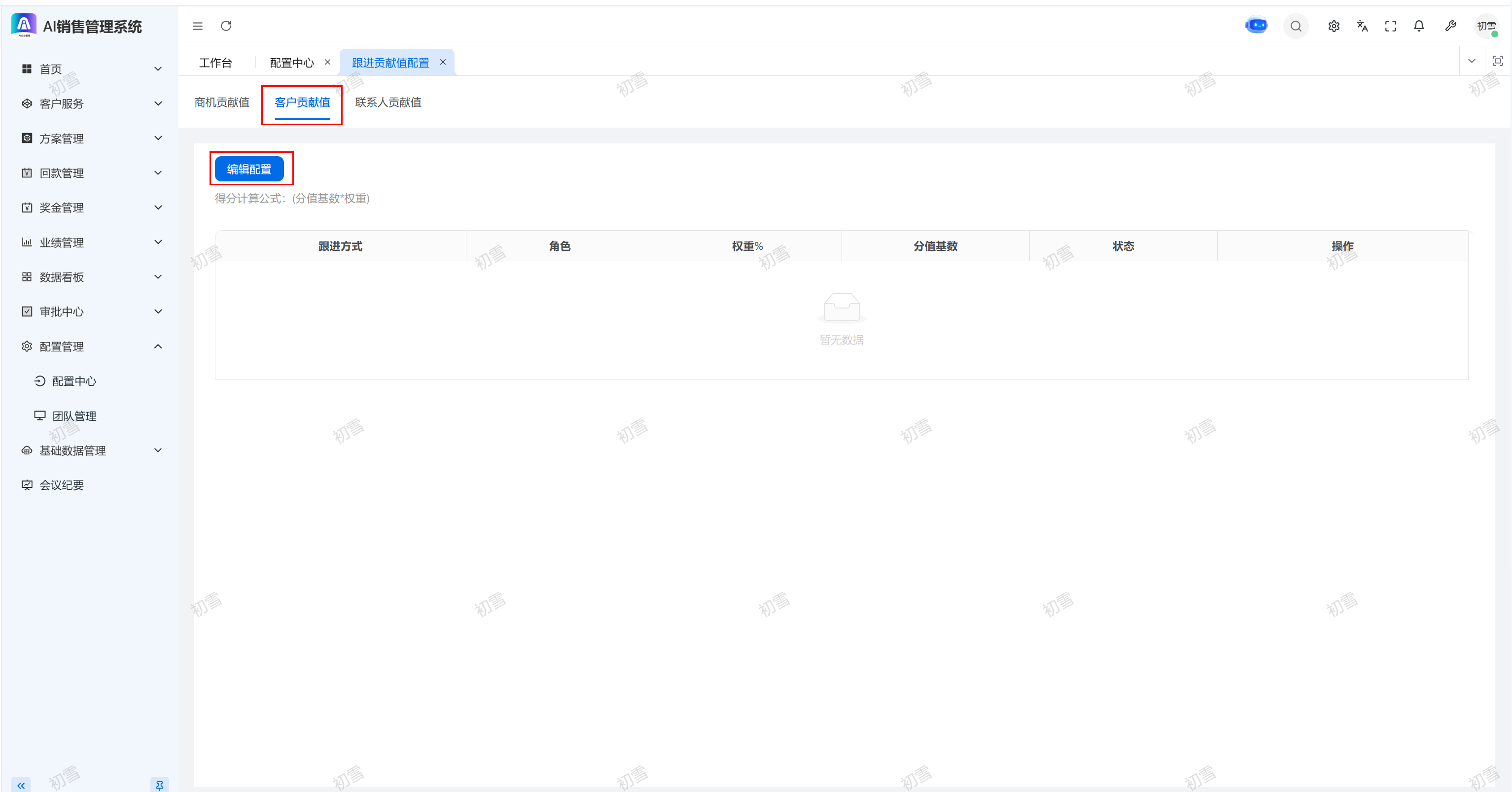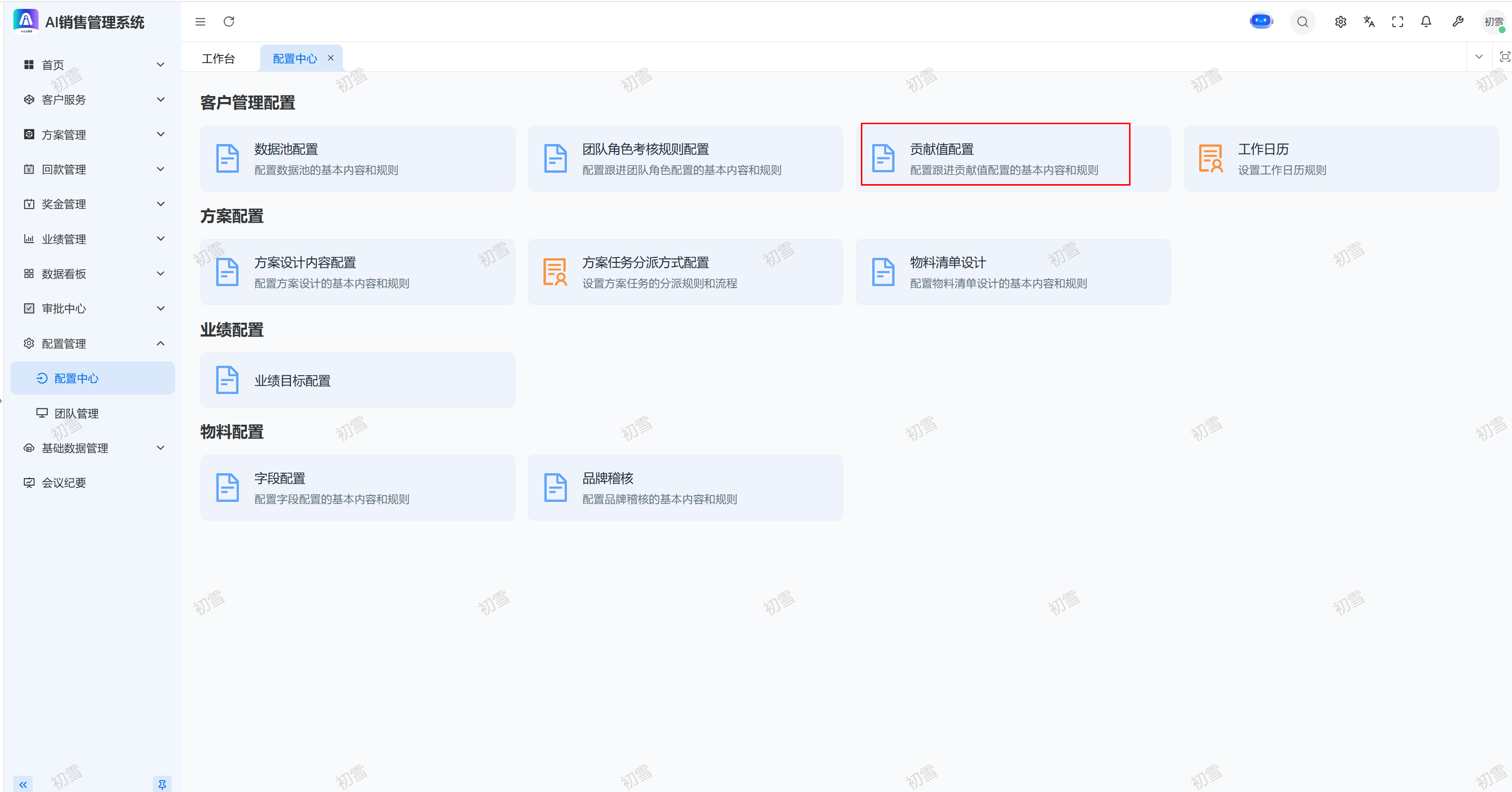 贡献值配置设置入口:【电脑端】>【配置管理】>【配置中心】> 【贡献值配置】