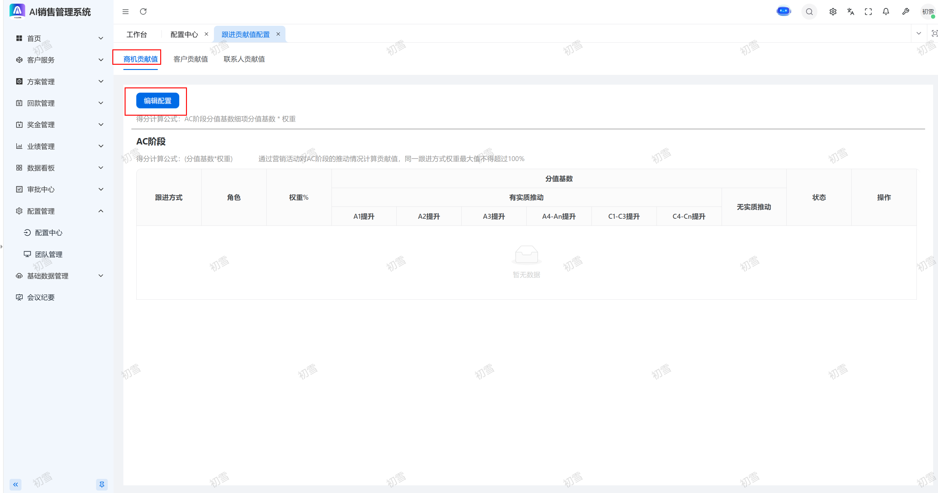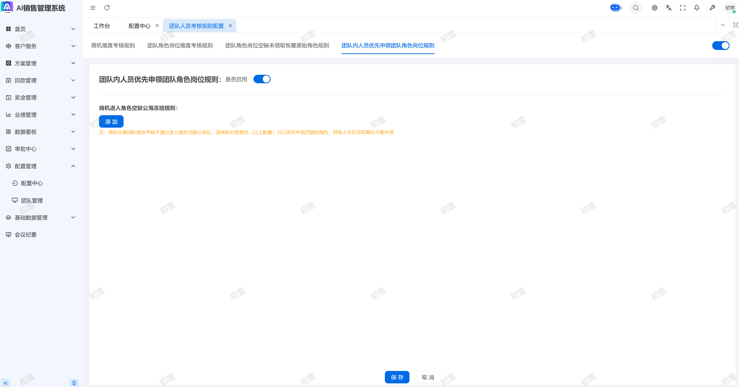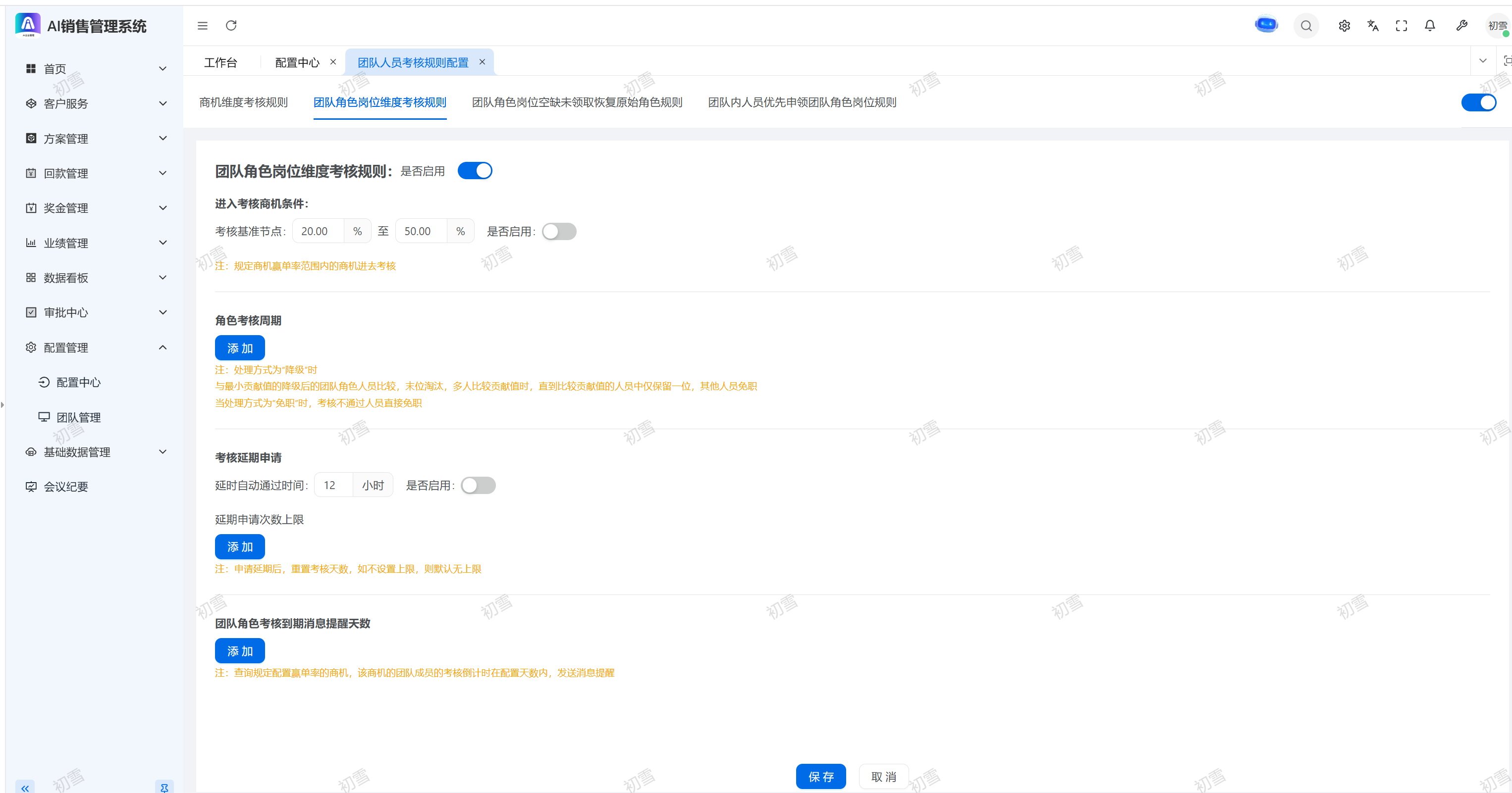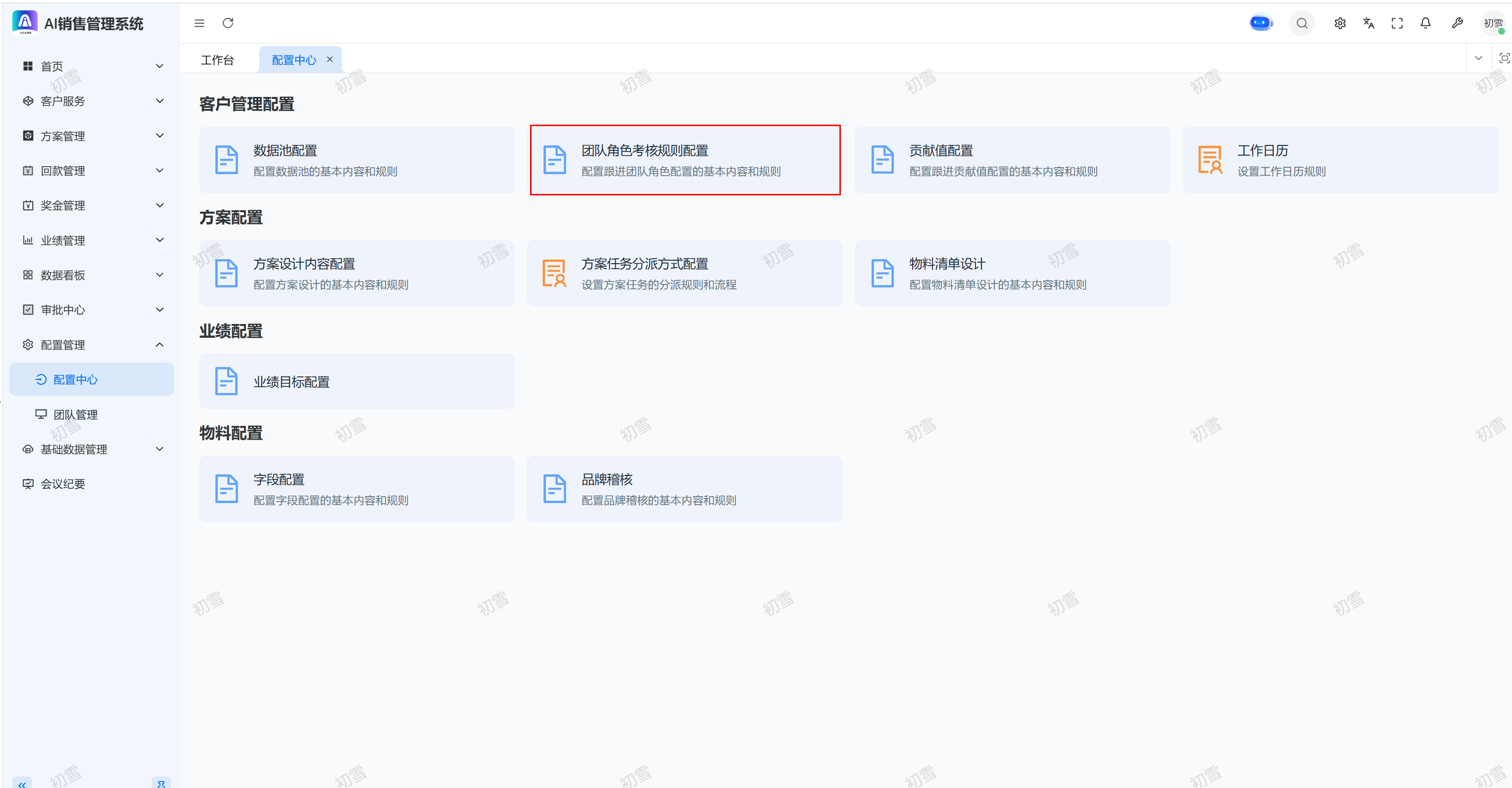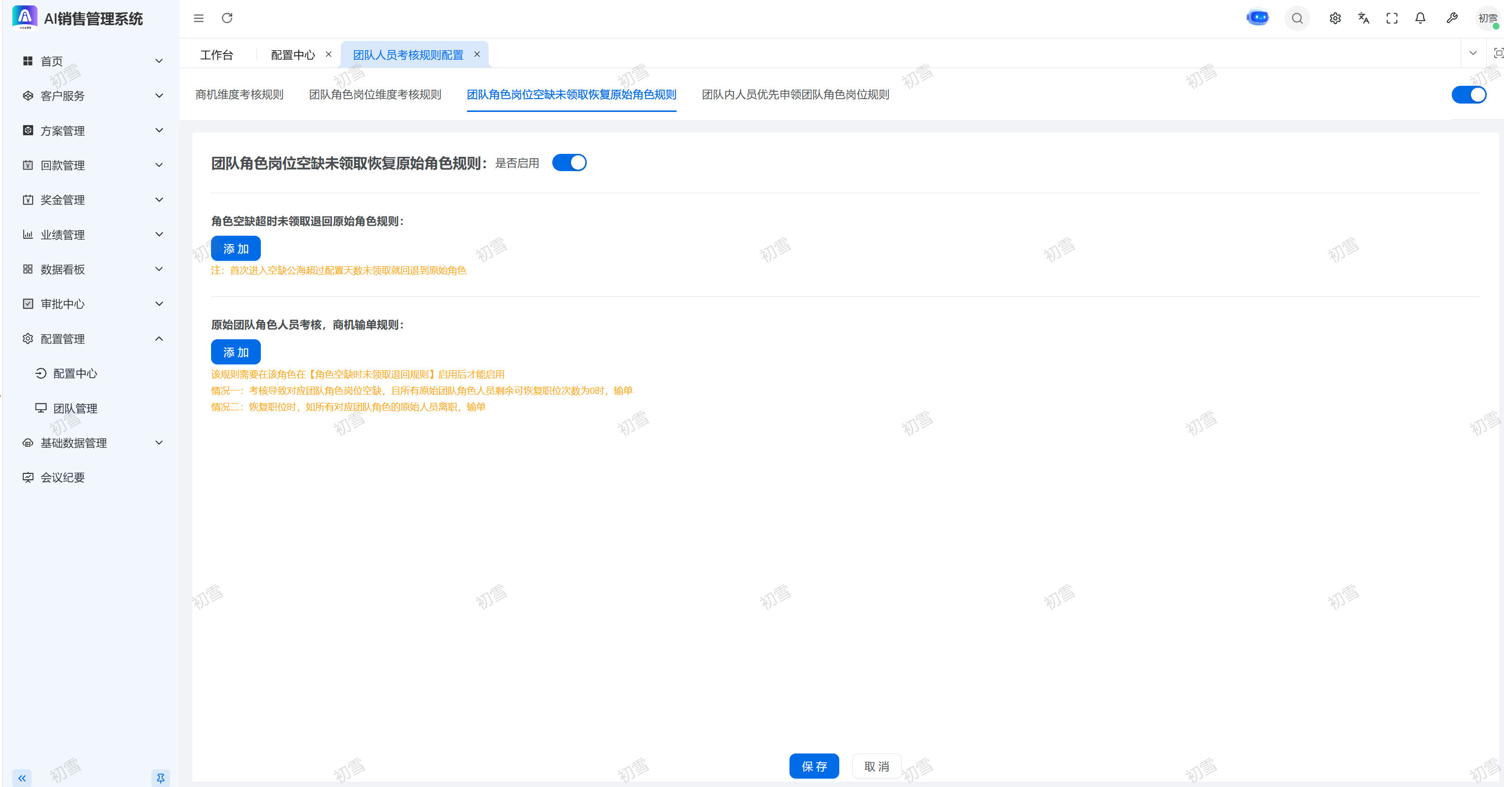 团队角色考核规则配置设置入口:【电脑端】>【配置管理】>【配置中心】> 【团队角色考核规则配置】