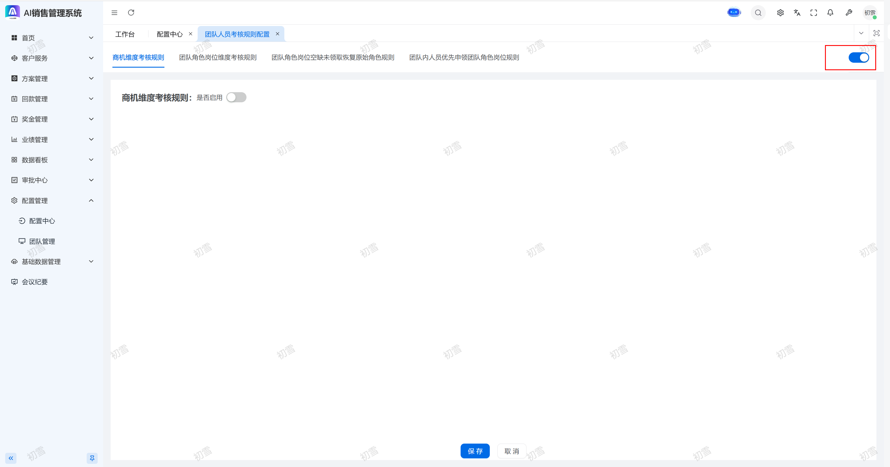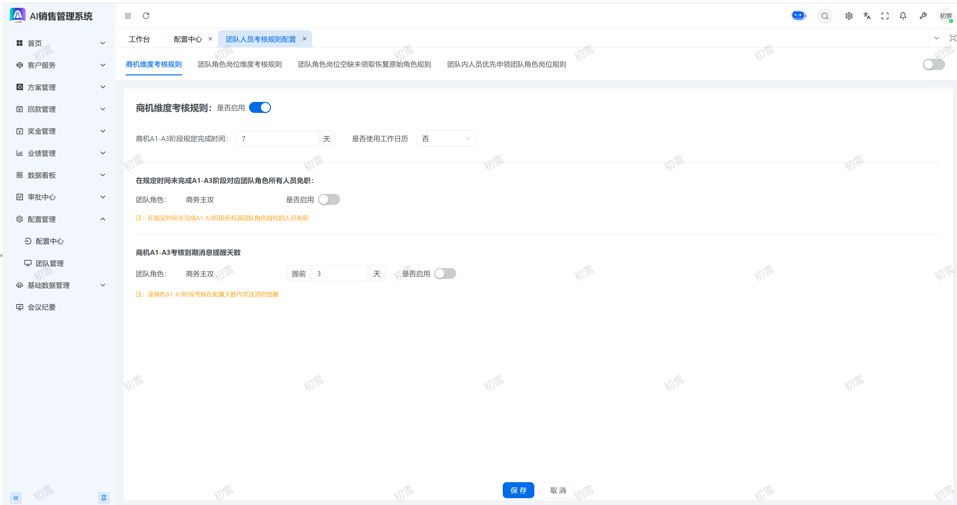 3、进入“商机维度考核规则”,按需开启,配置相关信息,点击保存 |