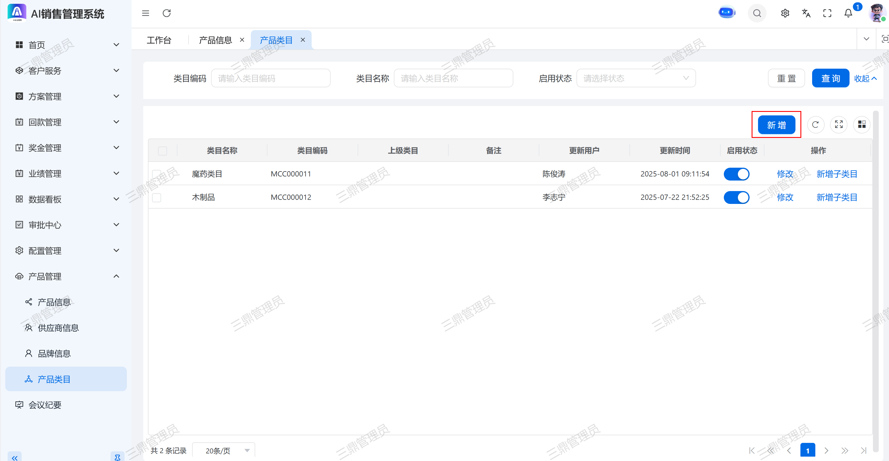 创建产品类目设置入口:【电脑端】>【产品管理】-【产品类目】