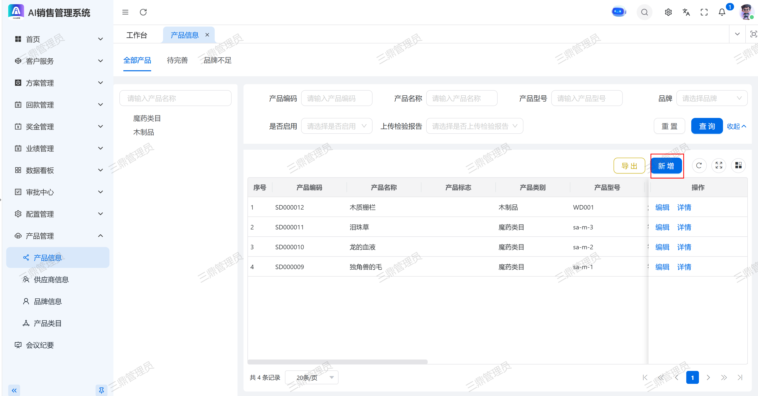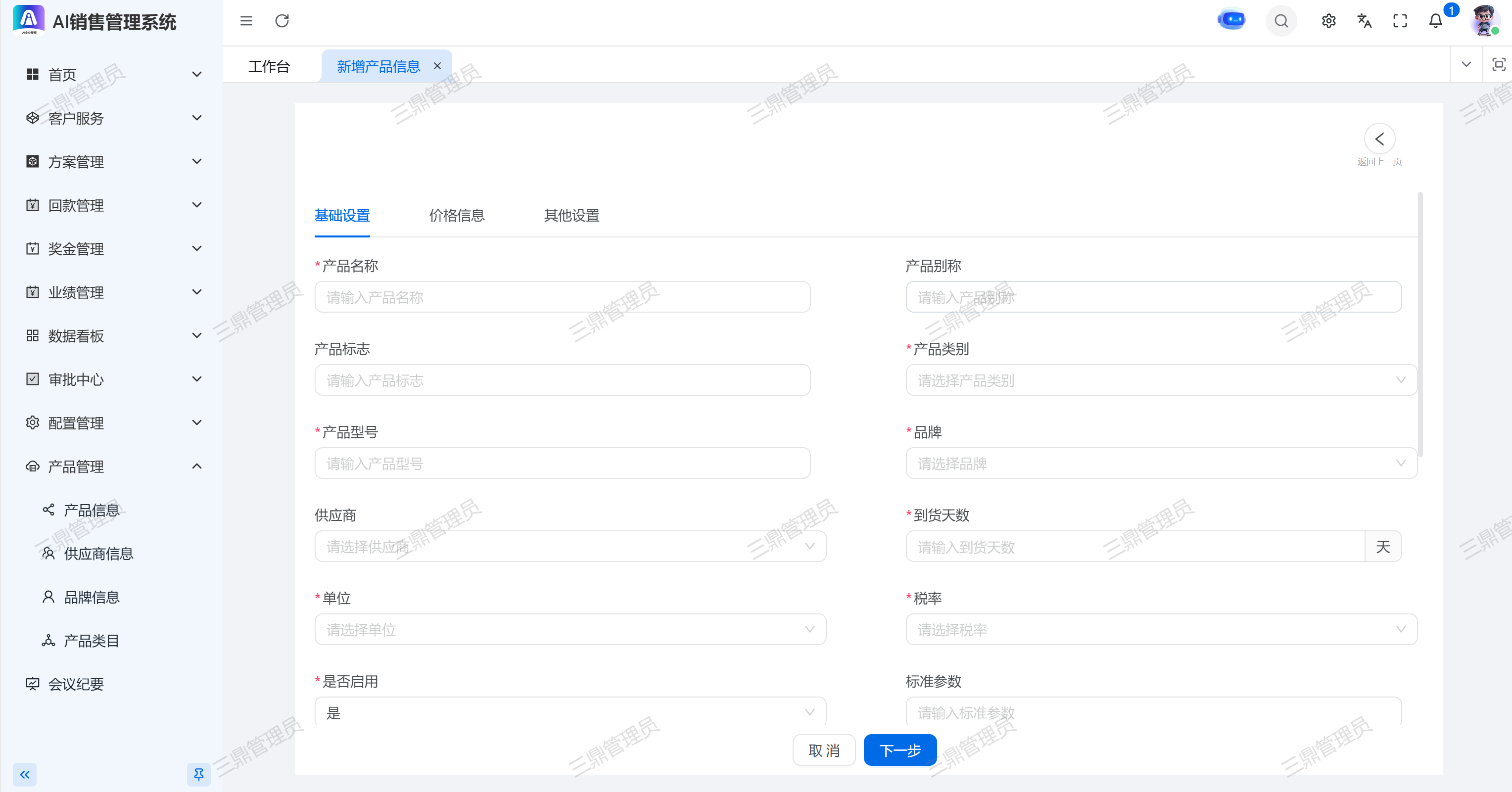 创建创建产品设置入口:【电脑端】>【产品管理】-【产品信息】