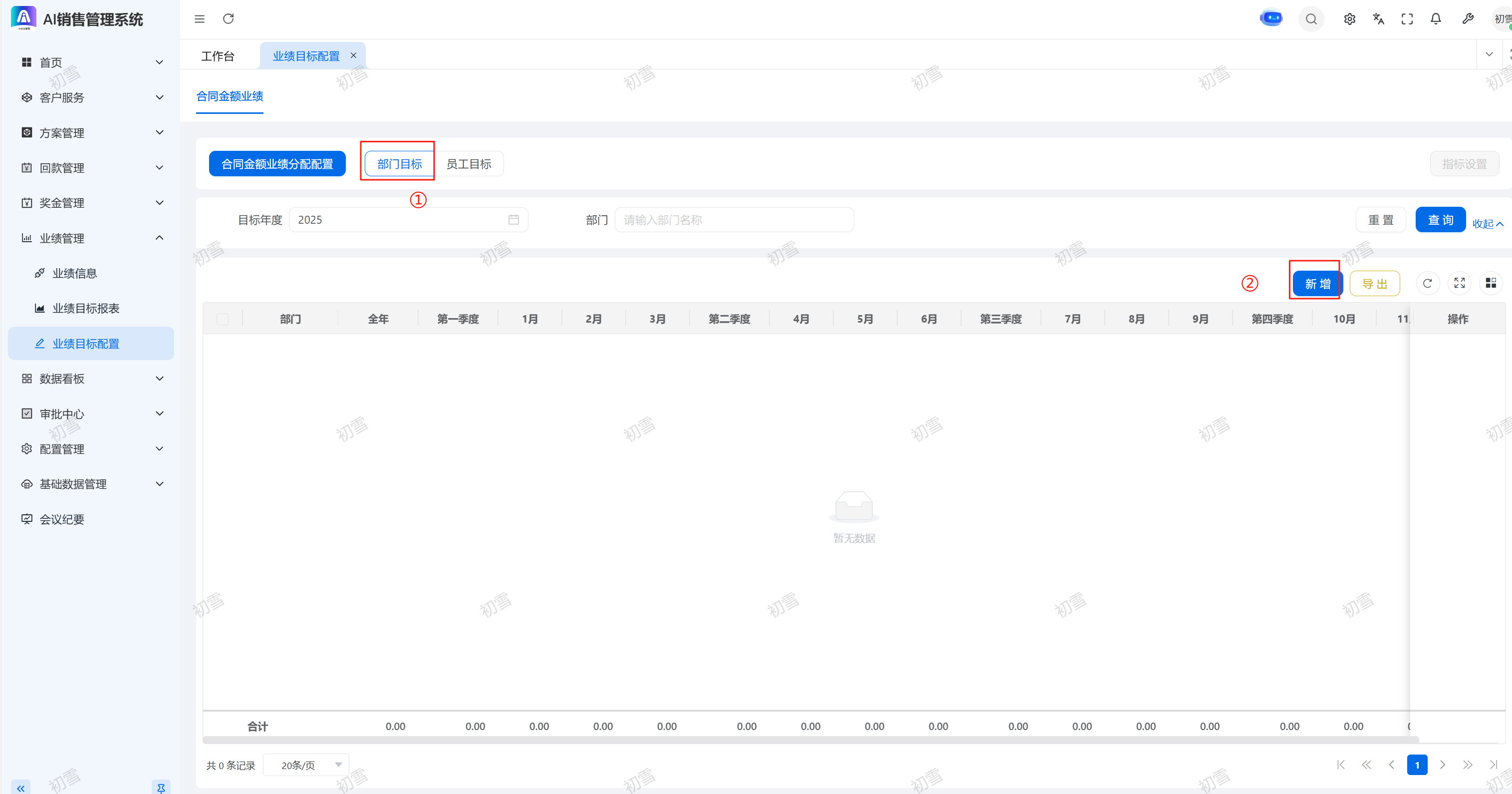 设置入口:【电脑端】>【业绩管理】-【业绩目标配置】
