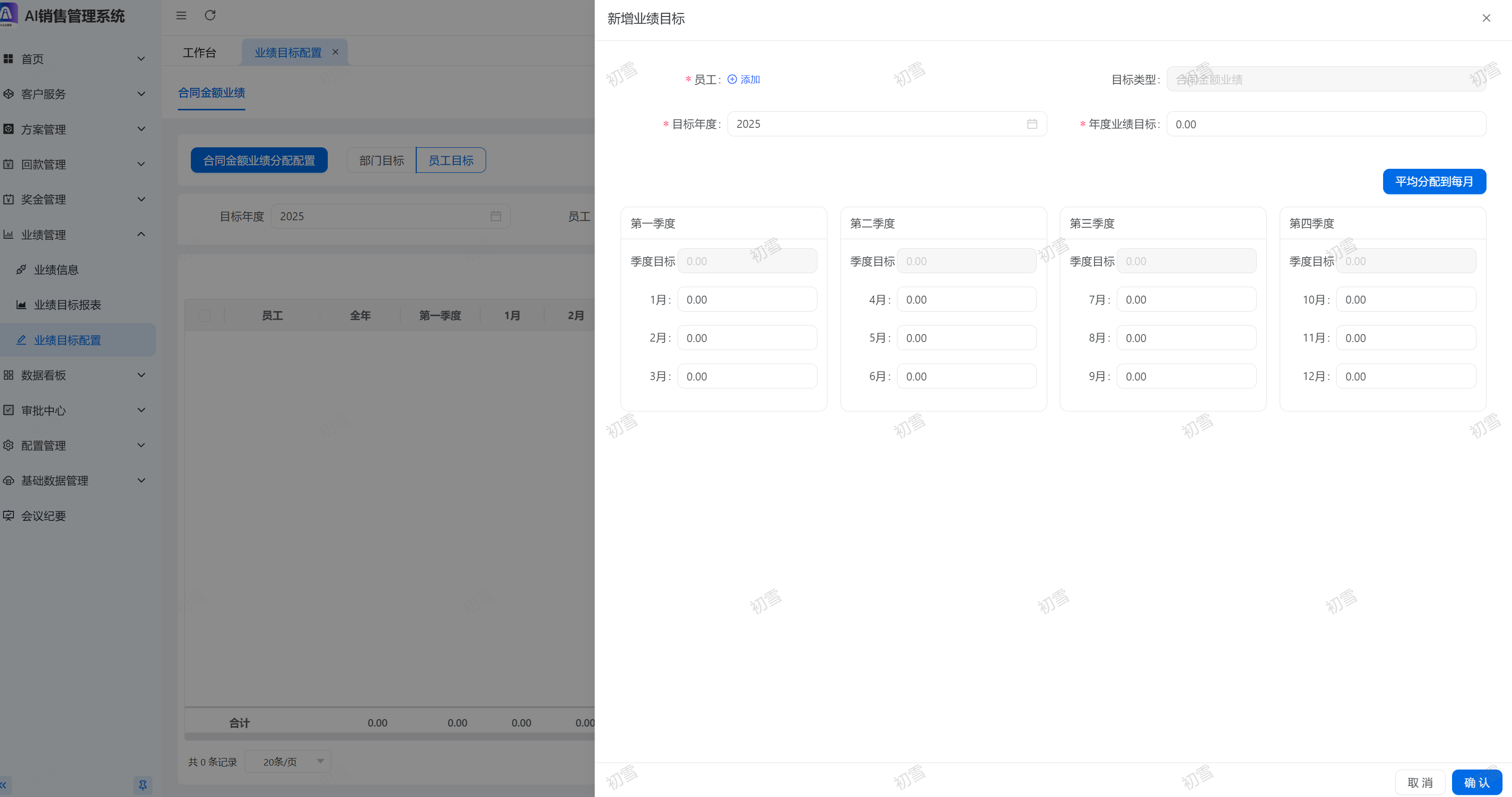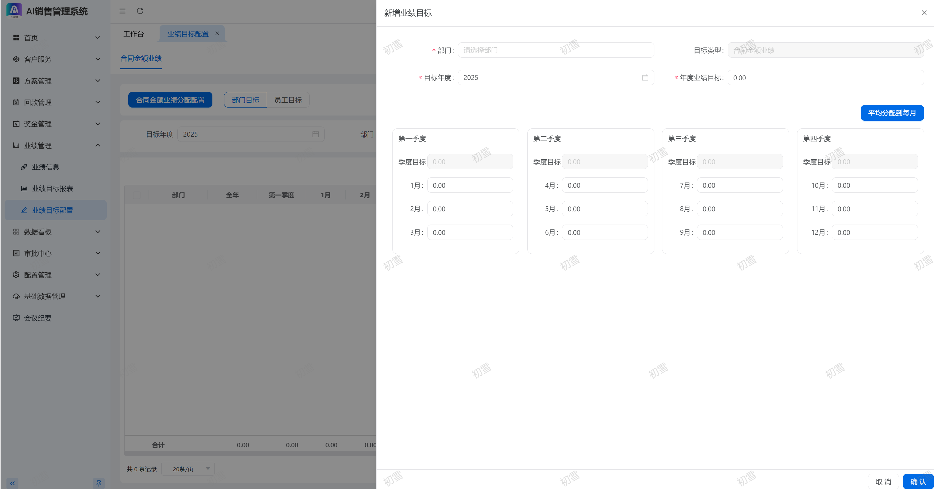 业绩目标管理模块通过设置量化基准,为部门/员工提供明确工作方向和考核依据。