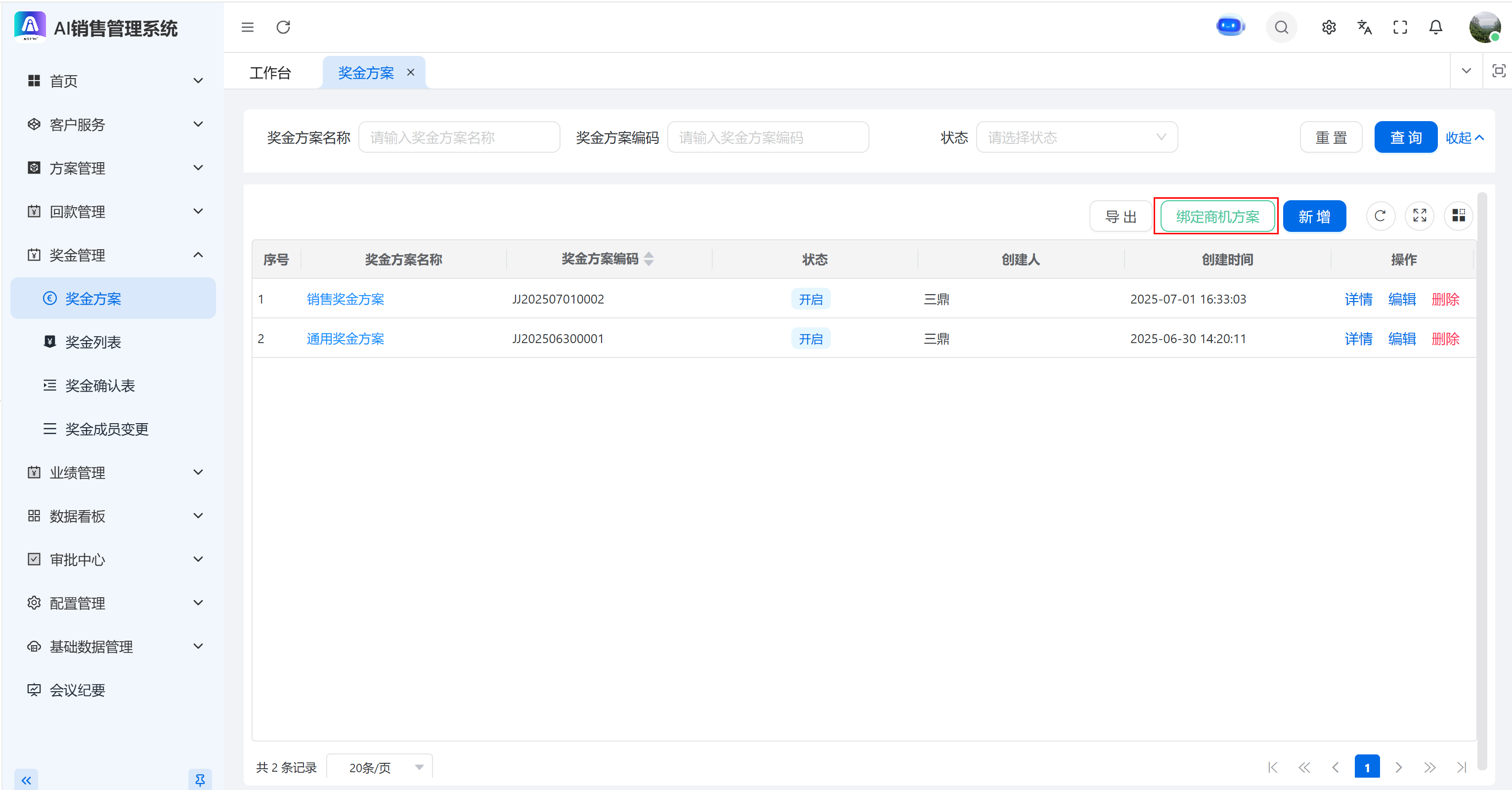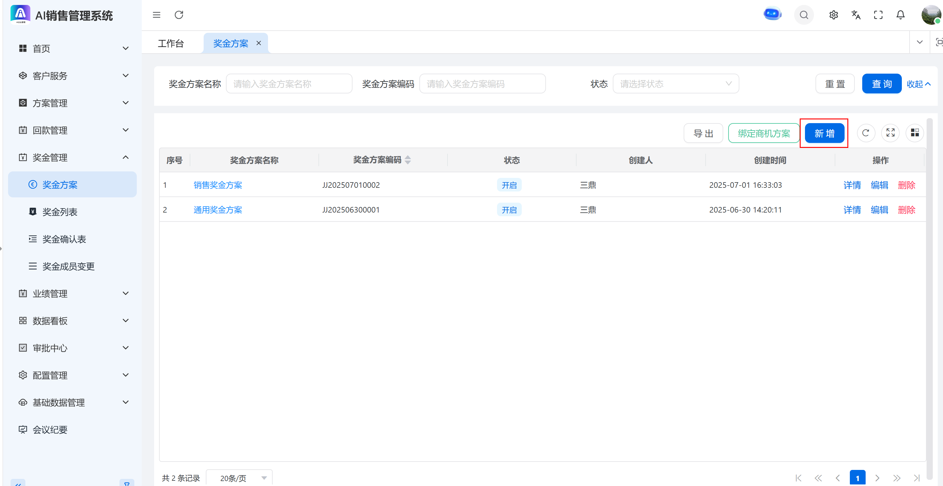 设置入口:【电脑端】>【奖金管理】>【奖金方案】