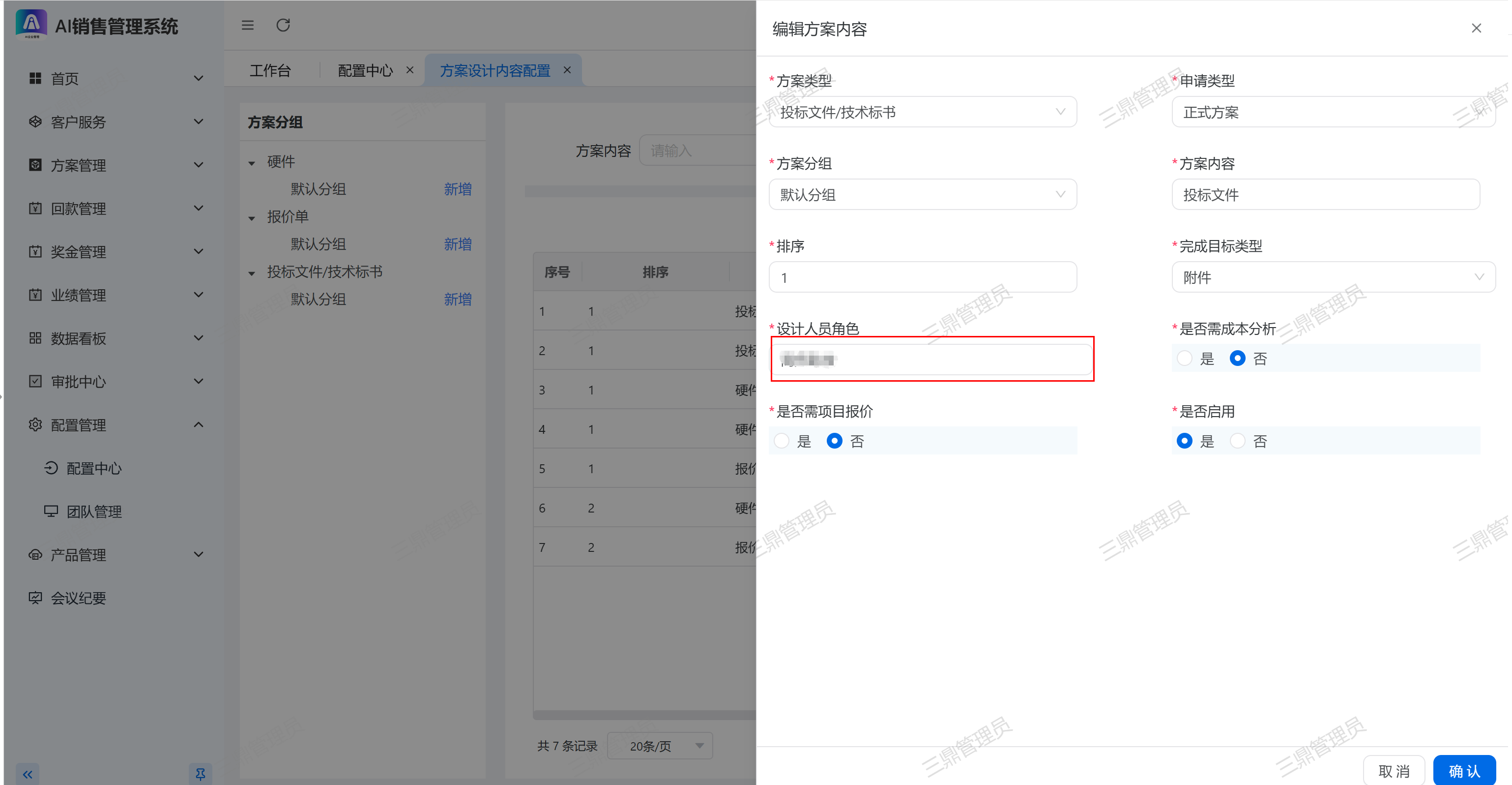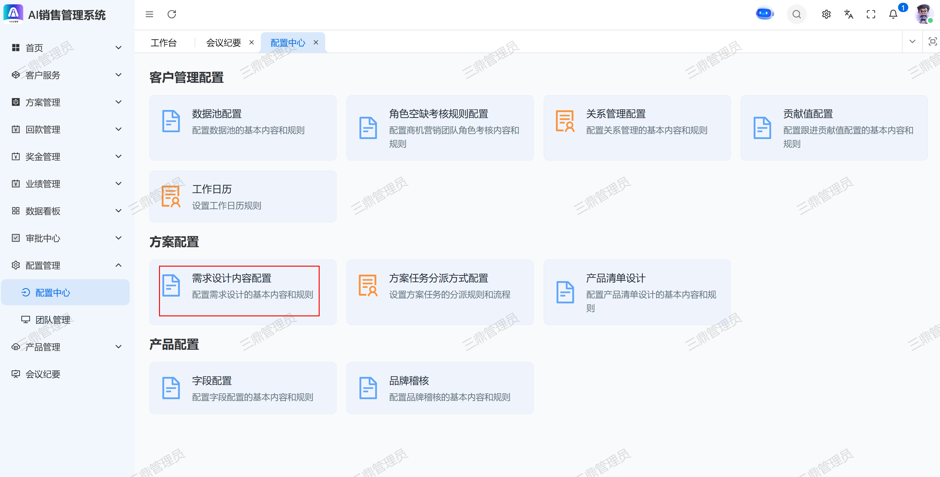 设置入口:【电脑端】>【配置管理】>【配置中心】> 【需求设计内容配置】