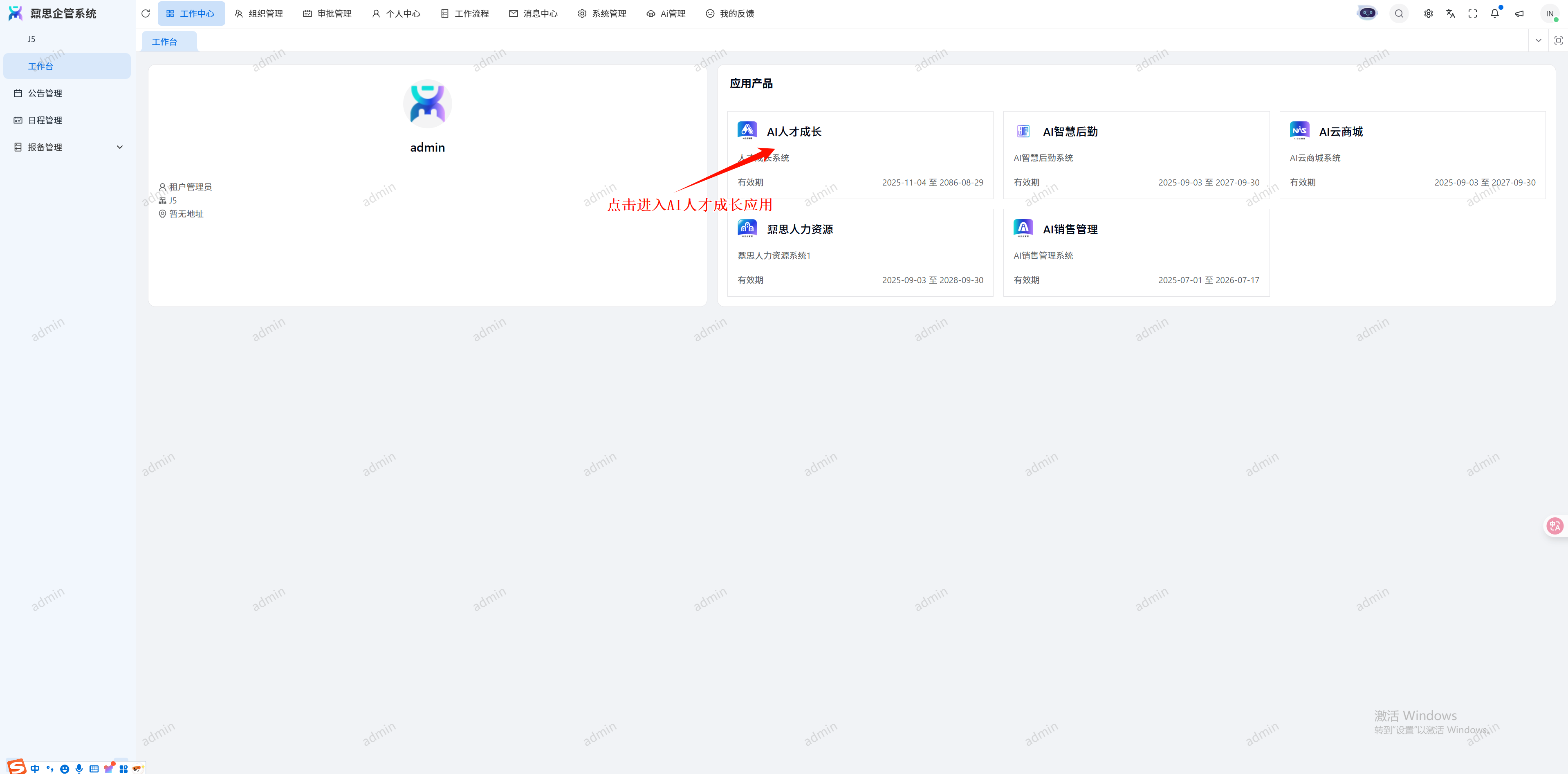 ## 电脑端登录方式 登录网址:https://ai-sanding.com/tenant 企业名称:三鼎科技集团 用户名称:【姓名全拼】 例如:lishiqing 密 码:(示例)User123456  #### 进入人才成长应用 登录成功后,点击【AI人才成长】进入应用