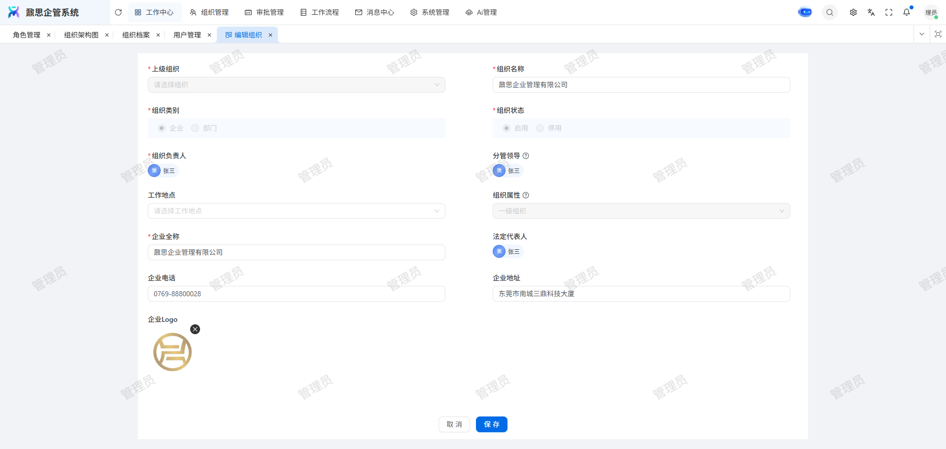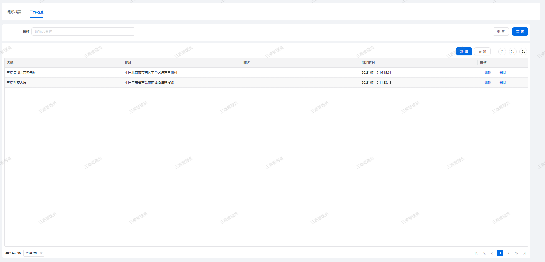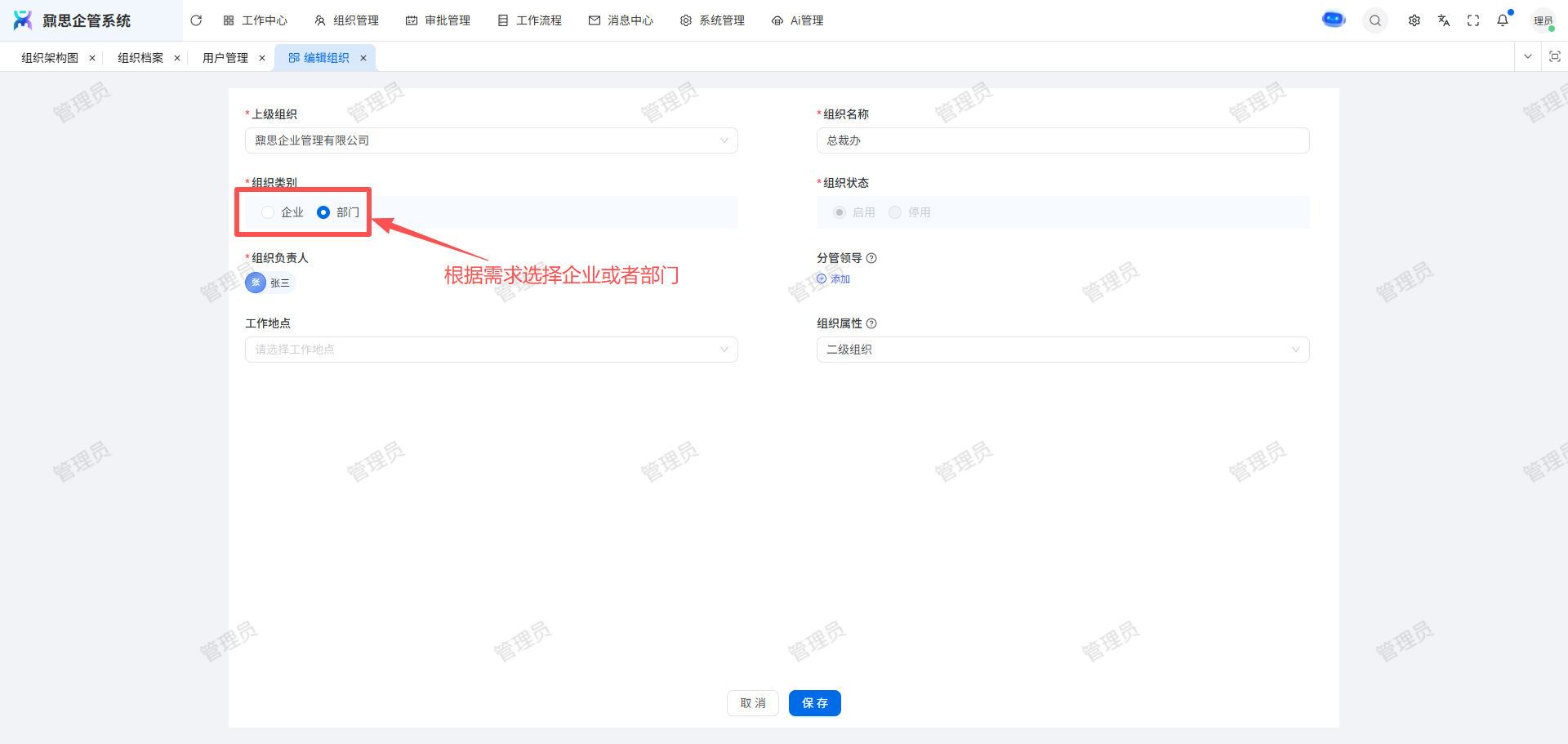 ## 第一步:地点配置   ## 第二步:建立企业组织  ## 第三步:建立子公司/部门组织  # 组织档案操作手册 ## 1. 组织档案管理 ### 1.1 查看组织档案 1. 登录系统后,点击左侧菜单栏中的“组织档案”。 2. 在右侧页面中,你会看到所有已有的组织列表。 3. 你可以通过顶部的搜索框输入部门名称来快速查找特定的组织。 ### 1.2 新增组织 1. 在组织档案页面,点击右上角的“新增”按钮。 2. 在弹出的窗口中,填写以下信息: - 上级组织:选择该组织所属的上级组织。 - 组织类别:选择“企业”或“部门”。 - 组织名称:输入组织的名称。 - 组织状态:选择“启用”或“停用”。 - 分管领导:选择该组织的分管领导。 - 组织属性:选择该组织的属性。 - 组织负责人:选择该组织的负责人。 - 工作地点:选择该组织的工作地点。 3. 填写完成后,点击“保存”按钮。 ### 1.3 编辑组织 1. 在组织档案页面,找到需要编辑的组织,点击右侧的“编辑”按钮。 2. 在弹出的窗口中,修改相关信息。 3. 修改完成后,点击“保存”按钮。 ### 1.4 删除组织 1. 在组织档案页面,找到需要删除的组织,点击右侧的“删除”按钮。 2. 确认删除后,该组织将被从系统中移除。 ## 2. 工作地点管理 ### 2.1 查看工作地点 1. 登录系统后,点击左侧菜单栏中的“工作地点”。 2. 在右侧页面中,你会看到所有已有的工作地点列表。 3. 你可以通过顶部的搜索框输入名称来快速查找特定的工作地点。 ### 2.2 新增工作地点 1. 在工作地点页面,点击右上角的“新增”按钮。 2. 在弹出的窗口中,填写以下信息: - 名称:输入工作地点的名称。 - 地址:输入工作地点的详细地址。 - 描述:输入对工作地点的描述。 3. 填写完成后,点击“确认”按钮。 ### 2.3 编辑工作地点 1. 在工作地点页面,找到需要编辑的工作地点,点击右侧的“编辑”按钮。 2. 在弹出的窗口中,修改相关信息。 3. 修改完成后,点击“确认”按钮。 ### 2.4 删除工作地点 1. 在工作地点页面,找到需要删除的工作地点,点击右侧的“删除”按钮。 2. 确认删除后,该工作地点将被从系统中移除。 ## 3. 注意事项 - 在进行任何操作前,请确保你有足够的权限。 - 在进行删除操作时,请谨慎确认,一旦删除,数据将无法恢复。 - 在新增或编辑信息时,请确保输入的信息准确无误。