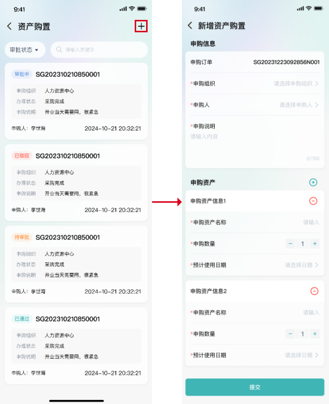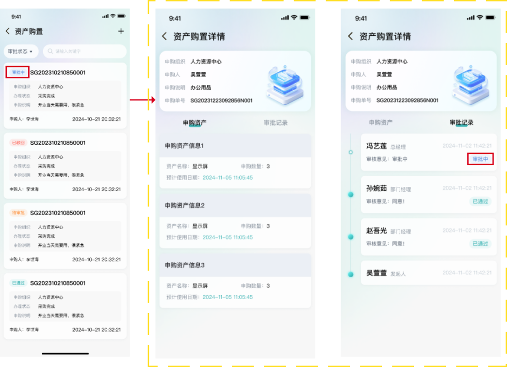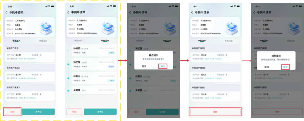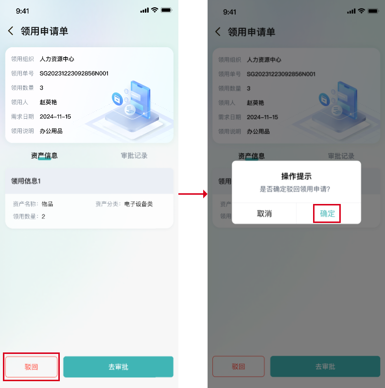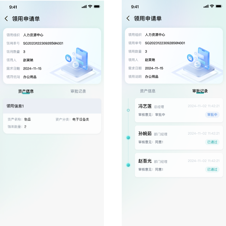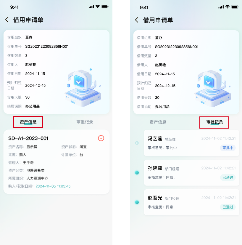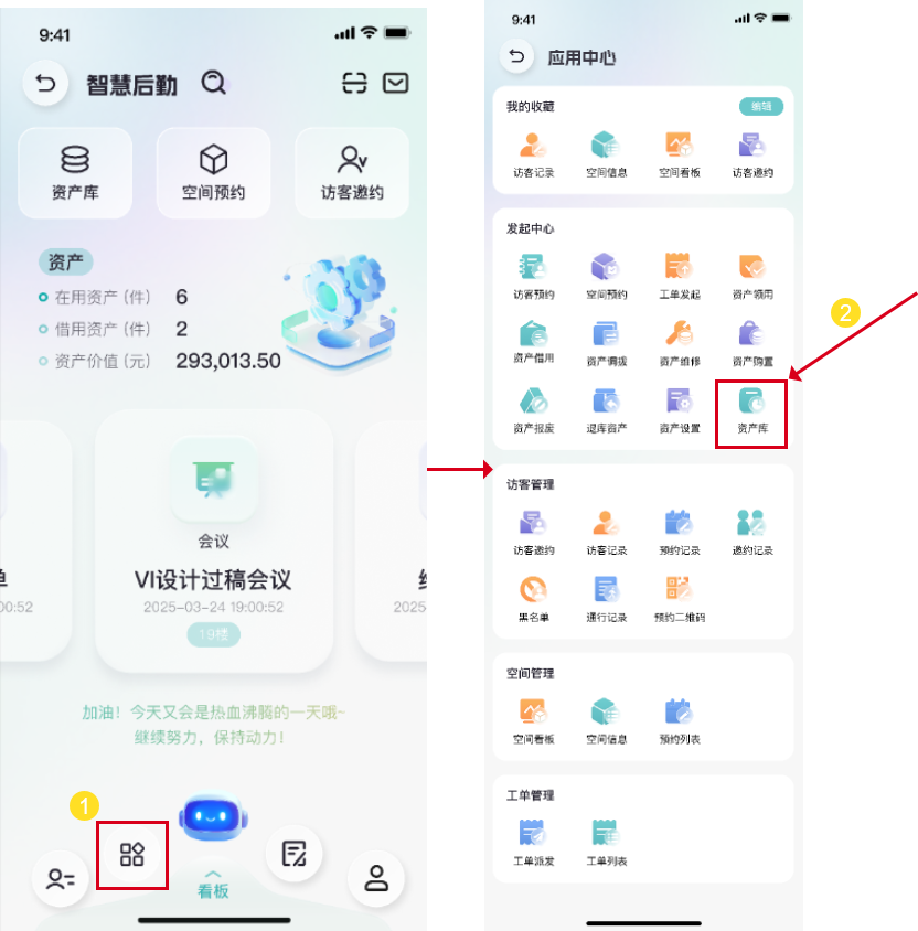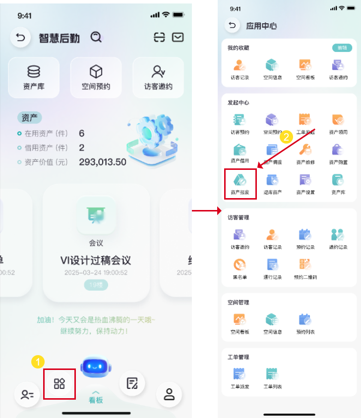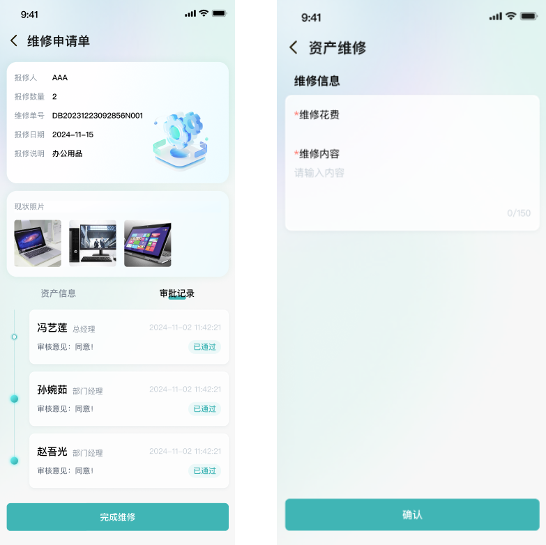 4\. 资产管理 4\.1资产设置 进入路径:  4\.1\.1新增资产分类  4\.1\.2编辑资产分类  4\.1\.3删除资产分类  4\.1\.4新增资产区域  4\.1\.5编辑资产区域  4\.1\.6删除资产区域  4\.1\.7资产编码设置  4\.2资产库 进入路径:  4\.2\.1资产入库 【闲置】状态下无使用信息 【在用】状态下有使用信息  4\.2\.2资产扫码入库  4\.2\.3资产编辑  4\.2\.4查看资产详情  4\.2\.5资产发起 进入路径:  可发起调拨、维修、报废、借用  4\.3资产购置 进入路径:  4\.3\.1新增资产购置  4\.3\.2查看资产购置详情 普通用户只能对资产进行查看  以下是管理员身份,除了查看外,还能对资产进行驳回、删除、入库操作。 驳回、删除申购申请。  已通过申购申请进行确认采购数量后方可入库,点击入库后填写具体购置新增资产信息。  4\.4资产调拨 进入路径:  4\.4\.1资产调拨申请  4\.4\.2确认调拨存放区域 接收人对调拨申请进行查看并对已通过的调拨申请确认存放区域。  以下是管理员身份,能对调拨申请进行驳回、删除操作。  4\.5资产领用 进入路径:  4\.5\.1资产领用申请  4\.5\.2查看资产申请领用详情(普通用户)  4\.5\.3驳回资产领用申请(管理员)  4\.5\.4资产分配(管理员)  4\.5\.5资产领用(领用人) 对已通过/已分配的资产领用申请,进行领用。  4\.5\.6退还资产(领用人)  4\.5\.7验收资产(管理员) 验收退还的资产。  4\.6资产借用 进入路径:  4\.6\.1资产借用申请  4\.6\.2查看资产借用申请详情(普通用户)  4\.6\.3删除资产借用申请(管理员) 管理员可对已驳回的资产借用申请进行删除。  4\.6\.4归还资产 借用人归还借用资产。  4\.6\.5验收资产 管理人验收借用资产。  4\.7资产维修 进入路径:  4\.7\.1资产维修申请  4\.7\.2资产维修编辑  4\.7\.3资产维修审批  4\.7\.4资产维修删除 管理员可对已驳回的资产维修申请进行删除。  4\.7\.5填写维修信息 维修人员完成维修后填写维修信息  4\.7\.2验收资产 申请人验收资产  4\.8资产报废 进入路径:  4\.8\.1资产报废申请  4\.8\.2资产报废审批  4\.8\.3资产维修删除 管理员可对已驳回的资产报废申请进行删除。  4\.8\.4资产退库 发起人可对已通过报废申请的资产进行退库,退库后该部分资产记录到退库资产列表。  4\.9资产盘点 4\.10退库资产 进入路径:  4\.10\.1资产还原  4\.10\.1查看退库资产详情